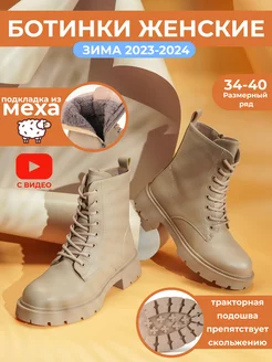 Ботинки женские зимние бежевые на молнии с мехом на шнурках