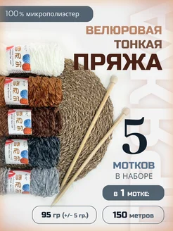 Велюровая плюшевая пряжа, 80 м. 6 мотков, набор 3 6