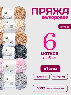Велюровая плюшевая пряжа, 80 м. 6 мотков, набор 23 6