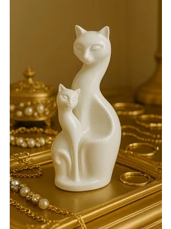 Статуэтка декоративная Кошка с котенком (черный глянец)