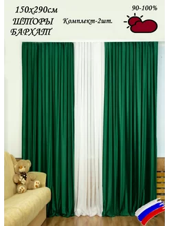 Шторы зеленые бархатные в гостиную спальню детскую 150х270см