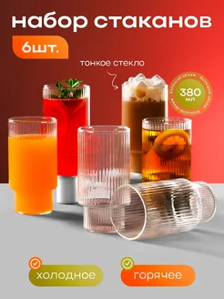 Набор стаканов 6 шт стеклянные рифленые
