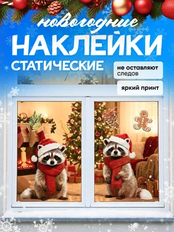 Новогодние детские наклейки на окна, зеркала и мебель 2025