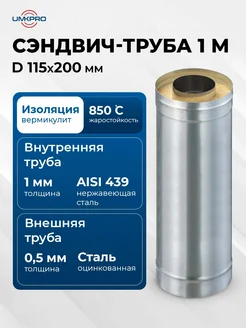 Сэндвич-труба 1,0м, ф 115х200, AISI 439 439, 0,5мм 0,5мм