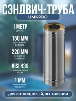Сэндвич-труба 1,0м, ф 150х220,AISI 439 439,1,0мм 0,5мм