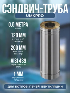 Сэндвич-труба 0,5м, ф 120х200, AISI 439 439, 1,0мм 0,5мм