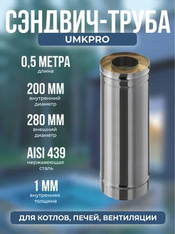 Сэндвич-труба 0,5м, ф 200х280, AISI 439 439, 1,0мм 0,5мм