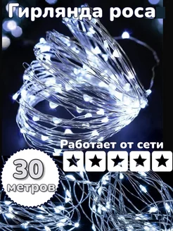 Гирлянда роса, холодный белый, 30 метров - работа от сети