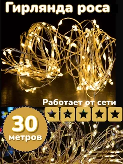 Гирлянда роса, теплый желтый, 30 метров - работа от сети