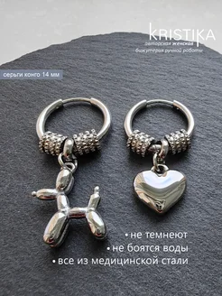 Серьги асимметричные собачка и сердечко