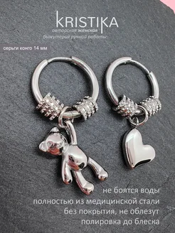 Серьги мишка и сердечко с бусинами