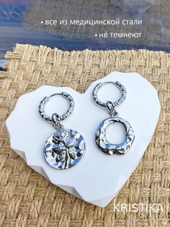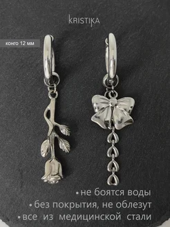 Серьги кольца с перевернутой розочкой и бантиком