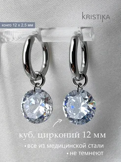 Серьги кольца белый циркон