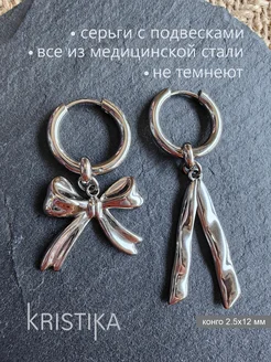 Серьги кольца бантик и лента