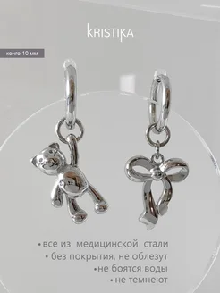 Серьги мишка и бантик