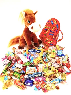 Сладкий новогодний подарок 2026 Лошадка с рюкзачком 800гр