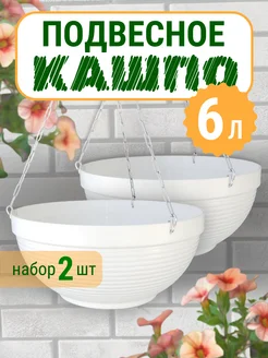 Кашпо подвесное 6 л на цепочке, цвет белый, комплект 2 шт