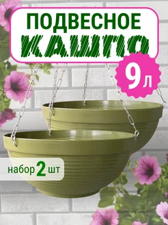 Кашпо подвесное 9 литров, цвет зеленый, набор 2 шт