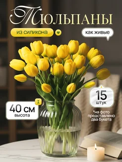 Тюльпаны силиконовые реалистичные для интерьера букет 15 шт