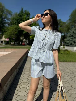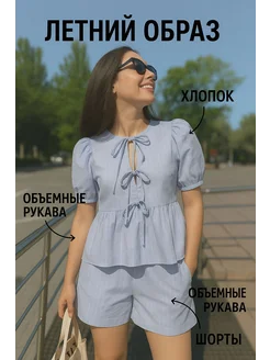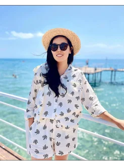 Женский летний костюм из муслина рубашка + шорты