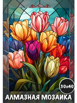 Алмазная мозаика цветы "тюльпаны в витраже" без подрамника