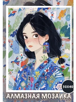 Алмазная мозаика девушка с синей сережкой без подрамника