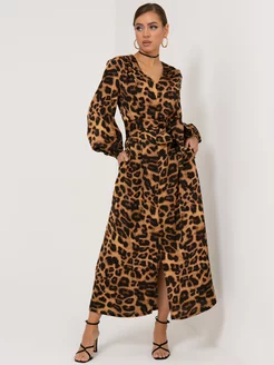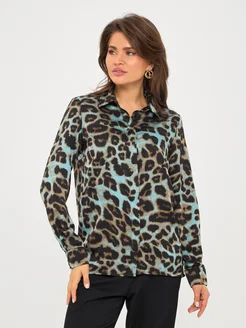 Блузка с длинным рукавом и леопардовым принтом, офисная