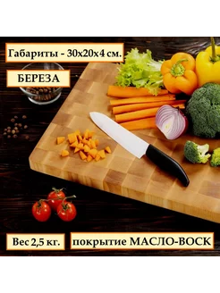 Деревянная разделочная доска торцевая из березы 30х20х4 см