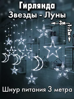 Гирлянда луна и звезды на окно стену