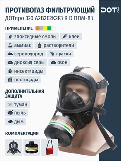 Противогаз 320 А2В2Е2К2Р3 R D ППМ-88 размер 2С