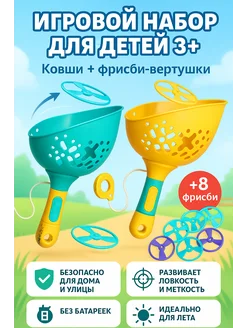 Игровой набор для детей ковши-сачки и фрисби-вертушки