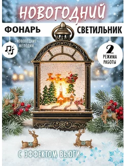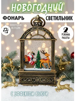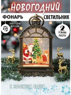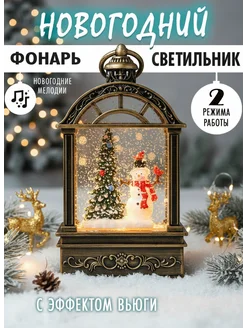 Новогодний фонарь со снегом и подсветкой музыкальный 2026