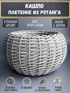 Кашпо для цветов плетеное из ротанга 5 литров