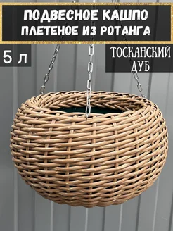 Подвесное кашпо для цветов плетеное из ротанга 5 литров