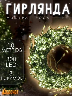 Гирлянда роса мишура светодиодная 10м 300L - хвойная лапа