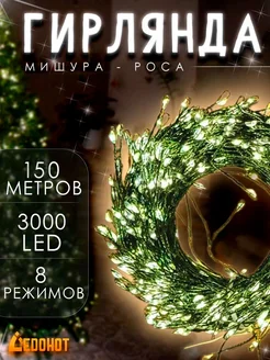 Гирлянда роса мишура светодиодная 150м 3000L с ПДУ - на елку