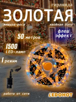 Гирлянда роса мишура светодиодная 50м 1500L на елку Золотая