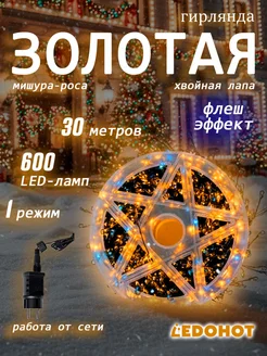Гирлянда мишура светодиодная уличная 30м 900L Золотая