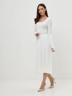 Платье лапша с поясом белое