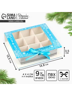Коробка под 9 конфет новогодняя с ячейками 14.5×13.5×3.5