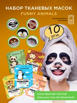 Маски для лица тканевые детские с животными набор 10 штук