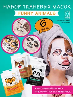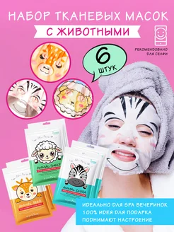 Маска для лица тканевая с животными Animal Mask набор 6 шт
