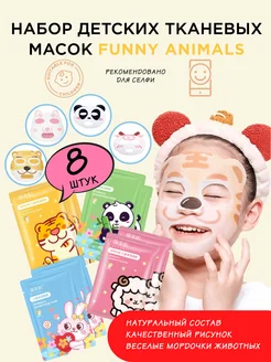 Маски для лица тканевые с животными детские набор 8 шт