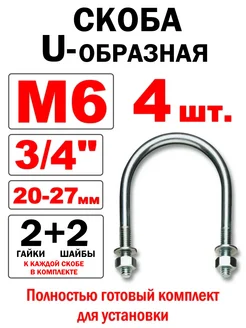 Скоба U-образная для труб болты крепления М6 20-27 мм 4шт