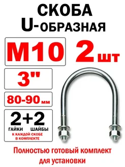 Скоба U-образная для труб болты крепления М10 80-90мм