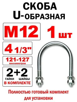 Скоба U-образная для труб болты крепления М12 121-127 мм