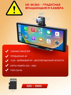 Видеорегистратор для автомобиля 360-градусное вращение,4K