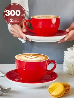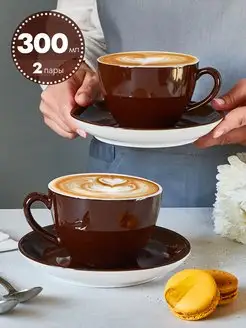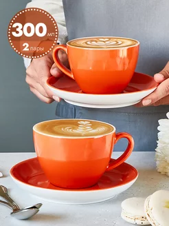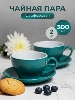 Чайные пары с блюдцем фарфоровые 2 шт 300 мл