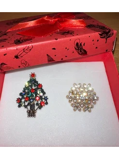 Брошь Новогодняя елочка и снежинка