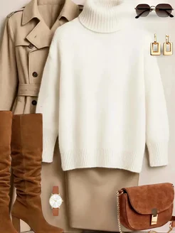 Свитер оверсайз с горлом вязаный удлиненный теплый